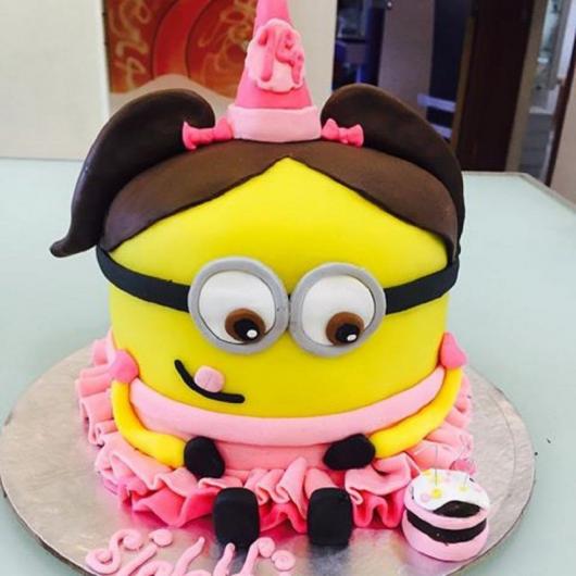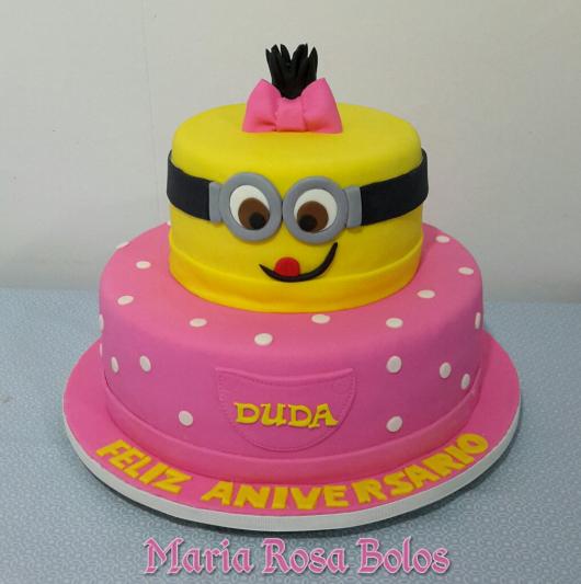 O bolo dos Minions rosa é muito pedido pelas meninas, já que a animação agrada ambos os sexos e pode ser uma alternativa também para aniversários femininos ou unissex.