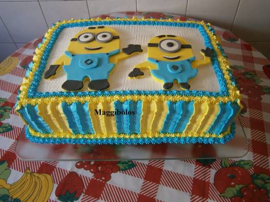 Para deixar o resultado ainda mais divertido, você pode criar bonecos dos Minions para compor o visual do bolo. Há como fazer exemplares comestíveis, o que deixa a proposta ainda mais interessante.