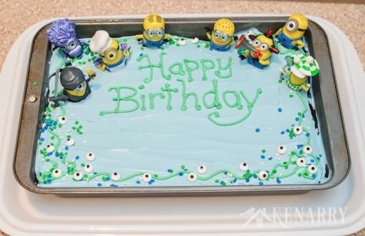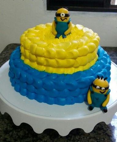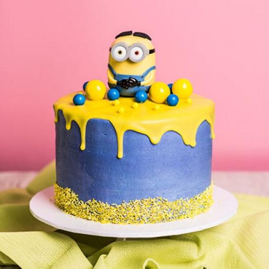 Combine o papel de arroz dos Minions e o glacê azul e amarelo para tematizar seu bolo: