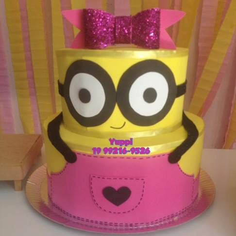 Quer uma dica de bolo dos Minions de 2 andares para menina? Confira: