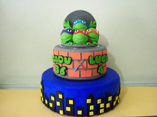 Ideia de bolo tartarugas ninja de 2 andares todo decorado