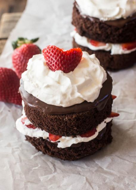 Descubra muitas inspirações de mini bolo de chocolate com morangos!