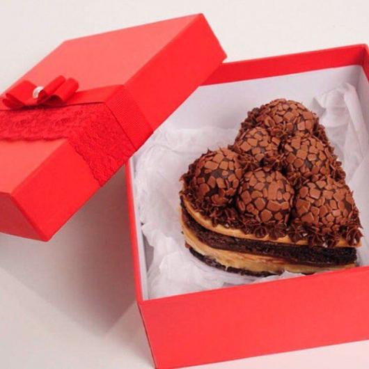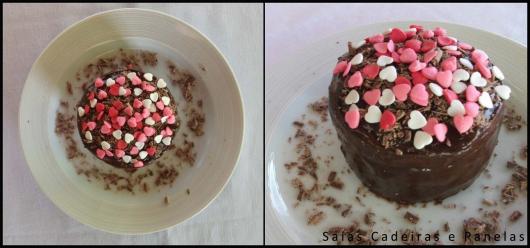 Ideia de mini bolo de chocolate recheado para presentear no Dia dos Namorados. Desta vez o recheio foi de doce de leite.