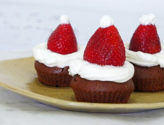 Dica de mini bolos para servir em festas variadas. O morango dá um toque final excepcional.