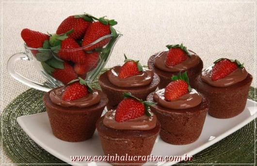 O morango é, talvez, a fruta mais utilizada para compor receitas de bolos. Seu sabor combina com qualquer tipo de massa, recheio e cobertura, além de seu visual ajudar bastante na beleza do resultado final. Você pode colocar os morangos entre as camadas do mini bolo, cortados em pedacinhos, ou colocá-los no topo, inteiros ou em pedaços também.