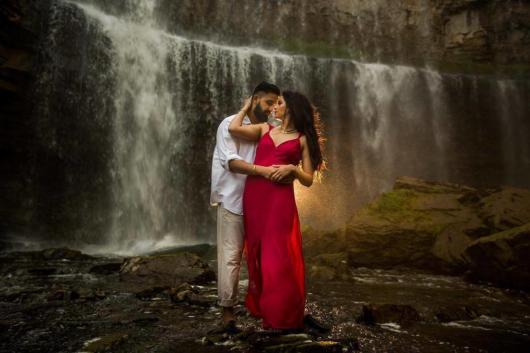 A cachoeira é um ambiente natural perfeito para o pré-wedding. O efeito que a cachoeira traz para as fotos é super impactante. Uma dica para arrasar no seu ensaio, é optar por realizar em um dia útil, dessa forma o casal evita lugares lotados.