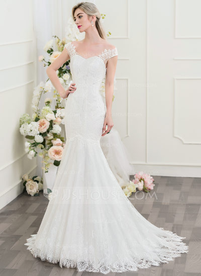 O vestido de noiva sereia abaixo é vendido na JJs House por R$742,60
