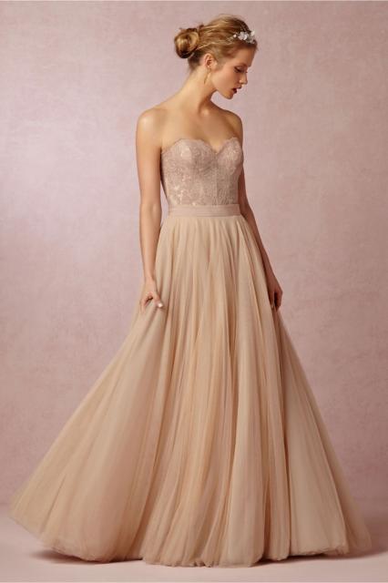 Apesar do branco ser a cor preferida das noivas, os vestidos na tonalidade bege tem feito o maior sucesso também. Ele é um meio termo para quem deseja um vestido com uma cor branda e clássica, mas não quer escolher o branco convencional.