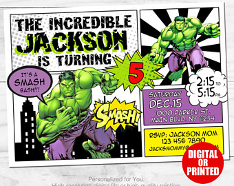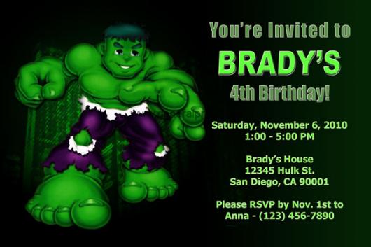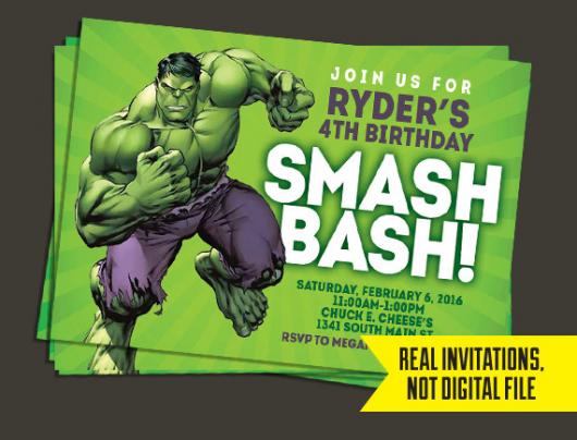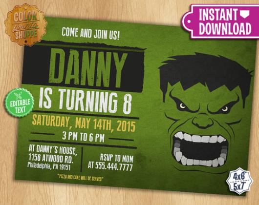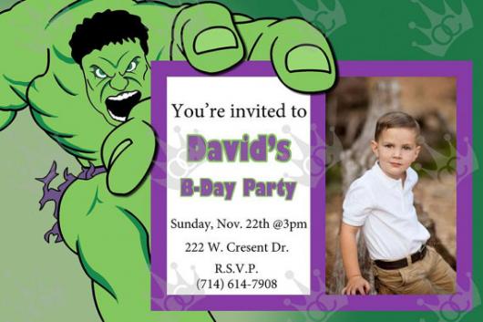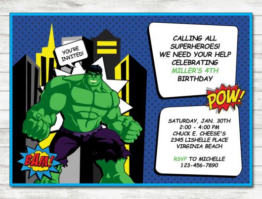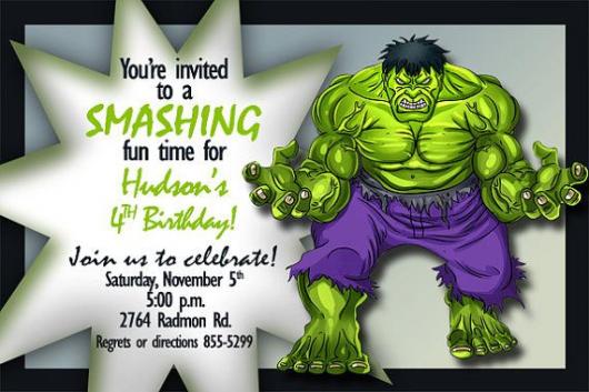 Quanto melhor e mais criativa a abordagem, mais as pessoas ficarão felizes e dispostas em marcar presença na festa. Veja só que exemplo bacana nesse convite do Hulk abaixo!