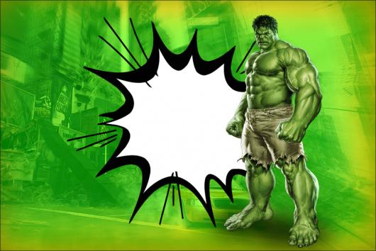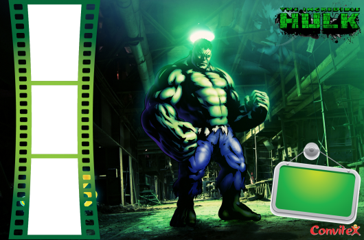 Uma versão mais próxima dos quadrinhos também chama atenção. Você pode unir as informações junto aos efeitos do desenho para deixar o convite do Hulk bem criativo!