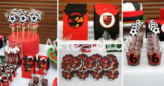 As lembrancinhas da Festa do Flamengo são um sucesso: latinhas, caxinhas de acrílico, tubetes, chaveiros, doces com embalagens personalizadas, peças de biscuit, centro de mesa de EVA entre tantas opções que ajudam a abrilhantar a festa.