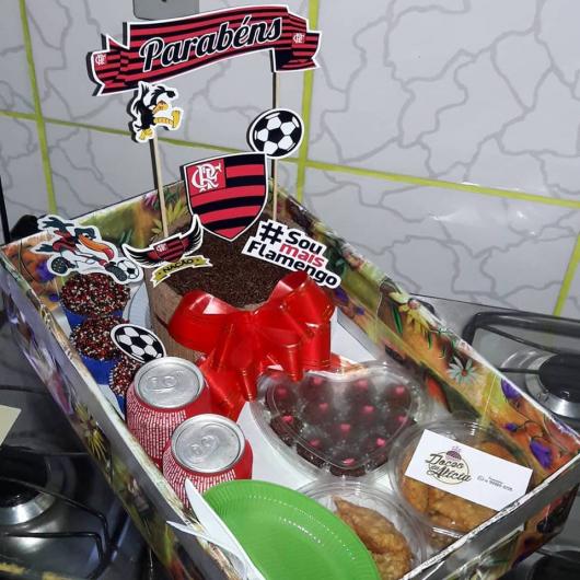 Quem disse que a festa na caixa não pode ser personalizada? A Festa do Flamengo na caixa é ideal para comemorar o aniversário a dois ou com mais alguns familiares. Geralmente, as confeiteiras trabalham com tamanhos de caixas para até seis pessoas.