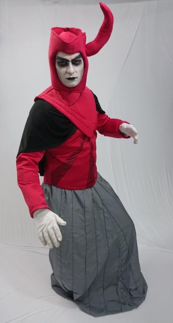 Mesmo parecendo complexo ao visual, a Fantasia Caverna do Dragão do vingador é uma das mais fáceis. Ele usa uma grande saia cinza que pode ser feita de tecidos leves como lanquinha ou oxford e uma capa preta. Uma dica legal é manter a maquiagem branca com os olhos negros ao redor com um bom delineador.