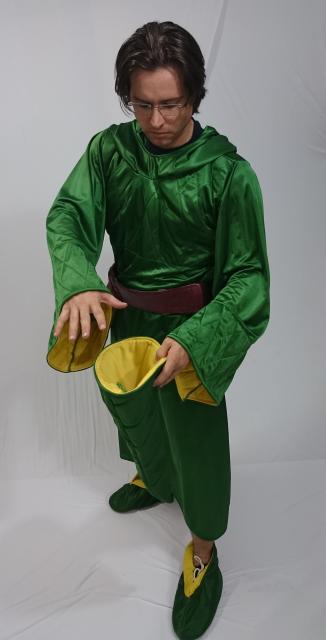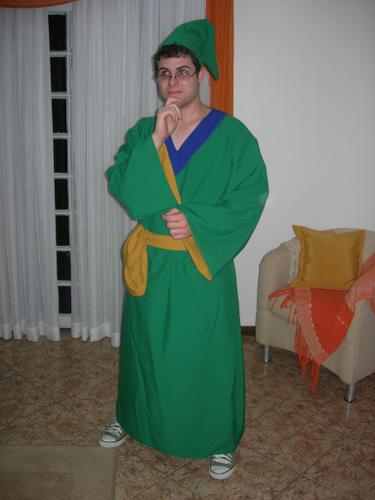 O jovem mago que nem sempre acerta nas magias é uma dica para quem quer uma fantasia masculina simples. É uma ótima dica porque é apenas uma grande capa com capuz do tipo vestido. Mesmo sendo comprada pronta uma costureira não terá problemas. O tecido usado como dica é o cetim pelo brilho semelhante ao do personagem e ser leve.