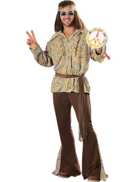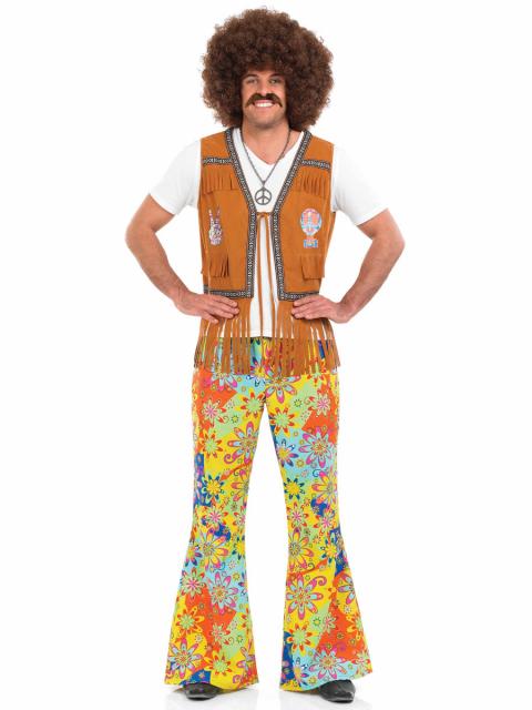 A onda hippie dos anos 60 é a principal inspiração para muitas fantasias masculinas. Os trajes coloridos e os acessórios se destacam nesse modelo em que ser brega é uma ótima opção. Aposte em perucas e adereços diversos também, além de calças boca de sino e camisas largas – combinações que não têm erro.