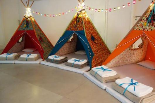 - Festa na Cabana – Essa loja online oferece locação de cabanas lindinhas tanto para meninas quanto para meninos. Cada cabana comporta 2 crianças e acompanha o que eles chamam de kit sono, que contém: