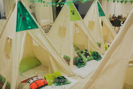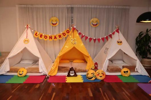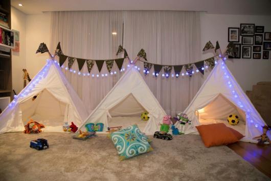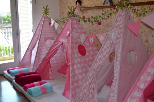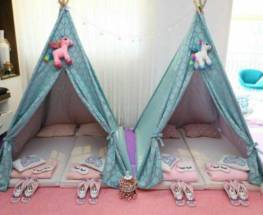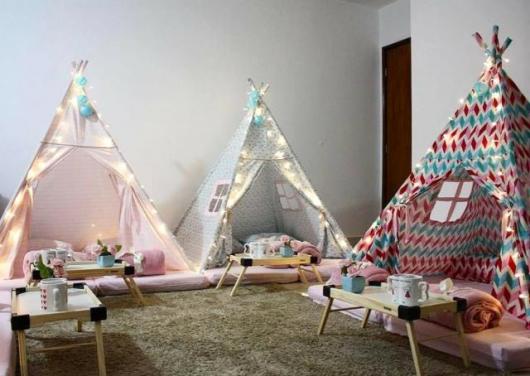 Essa é uma boa opção tanto para festas do pijama só para meninos, para meninas ou também aquelas que receberão tanto uns como outros. Muitas lojas disponibilizam algumas opções de barracas decoradas para você escolher.