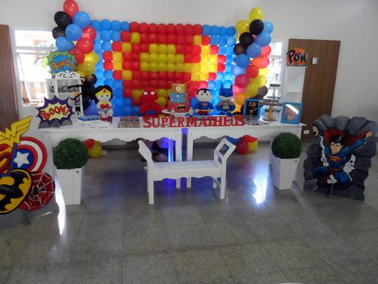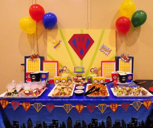 O ambiente deve ser colorido ou seguir as cores de um herói específico. Em muitos casos, o azul, amarelo e vermelho próprios do Super Homem e da Mulher Maravilha são os mais convencionais!