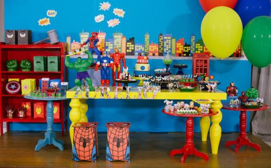 Já no caso de um apartamento, casa ou local compacto, o foco deve ser na mesa do bolo, mas não se esqueça de colocar alguns enfeites em pontos estratégicos do espaço para dar a sensação de que todos estão realmente em um filme junto com todos esses heróis fascinantes. Os pequenos adoram essa proposta e com certeza ficarão muito felizes.