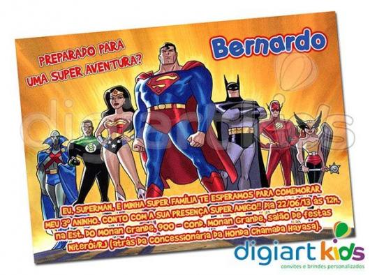 O grupo da DC Comics é formado por vários ícones: Batman, Superman, Mulher Maravilha, Aquaman, Ciborgue e Flash. Cada criança se identifica com um deles ou gosta de todos, por isso preferem que cada um deles esteja presente em sua comemoração de aniversário. Cabe salientar que essa festa é recomendada para meninos e meninas, sem restrições. Qualquer um pode desfrutar de todo esse cenário deslumbrante.