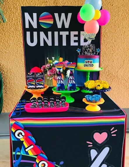 A festa Now United é um tema que permite decoração colorida, e muito mix de cores, mas a proposta também pode ir além e seguir o estilo de decoração neon, trazendo uma proposta super descolada para decorar a comemoração.