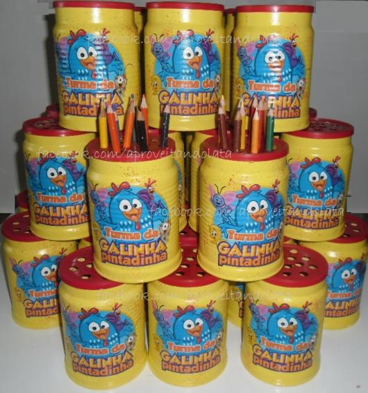 O tema Galinha Pintadinha também faz muito sucesso, principalmente entre as crianças pequenas, de poucos meses até 2 anos. Por conta disso, ele é sempre tema de festas infantis, podendo apresentar inúmeras possibilidades de decoração personalizada, incluindo as lembrancinhas com lata de leite.