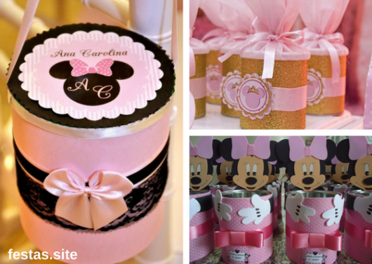 A Minnie é uma personagem super querida entre as meninas e por isso é muito solicitada para decorar festas infantis e até mesmo chás de bebê. Você pode usar como referência para criar suas lembrancinhas a Minnie Rosa, a Minnie Vermelha ou a Minnie Baby, que são temas muito frequentes quando o assunto é decoração de festas.