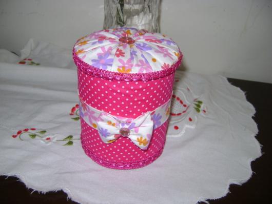 Outra ideia é fazer a lata decorada com bolinhas brancas, sendo que o fundo pode ser preto, vermelho ou rosa. Essa dica é legal para deixar a lembrancinha mais alegre e com a cara da temática.